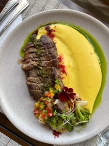 Carol: O chef responsável pela casa é o chef Pietro Prux. Ele consegue trazer sabores diferenciados, fazendo uma cozinha fusion contemporânea — misturando sabores clássicos de bistrô com uma vertente italiana.