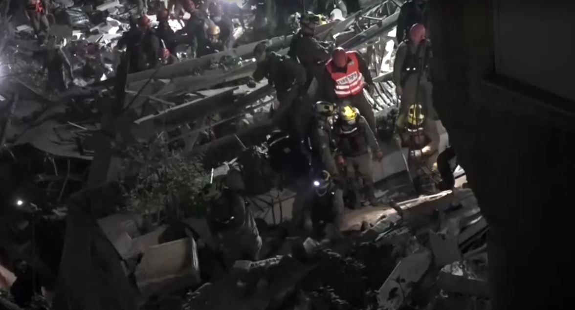 JK Equipes de emergência ainda faziam buscas nos escombros por desaparecidos na noite deste domingo (5), horas depois que um míssil um prédio de sete