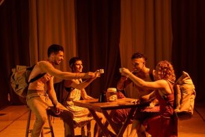 Um voo atravessado por acrobacias aéreas, mochilas abertas em meio a cordas lisas e faixas suspensas, sons de aeroporto e gestos de acolhimento. Assim se desenha “Chá com Mel”, o primeiro espetáculo da Cia. Ponto Alto, que faz duas apresentações no Teatro Newton Rossi, no Sesc Ceilândia: nos dias 21 e 22 de junho, às 19h e 18h, respectivamente. Com classificação livre e ingressos a preços populares, o espetáculo é uma celebração da diversidade cultural vivida por quatro artistas candangos durante uma imersão artística na Turquia.